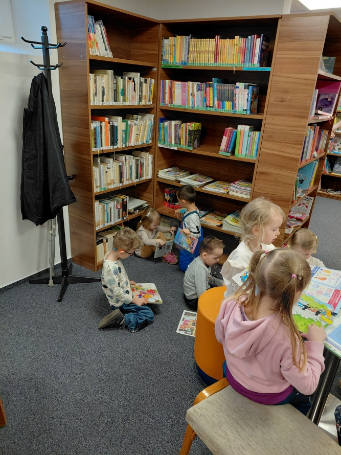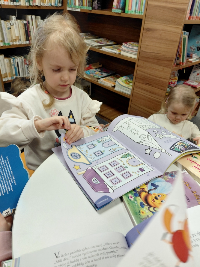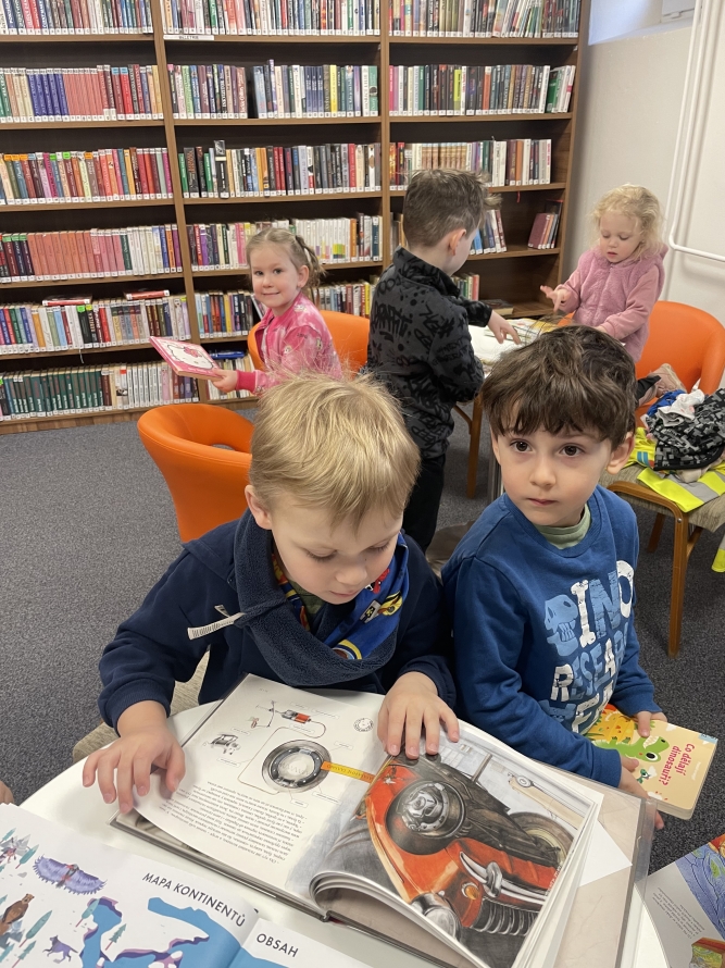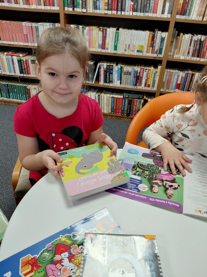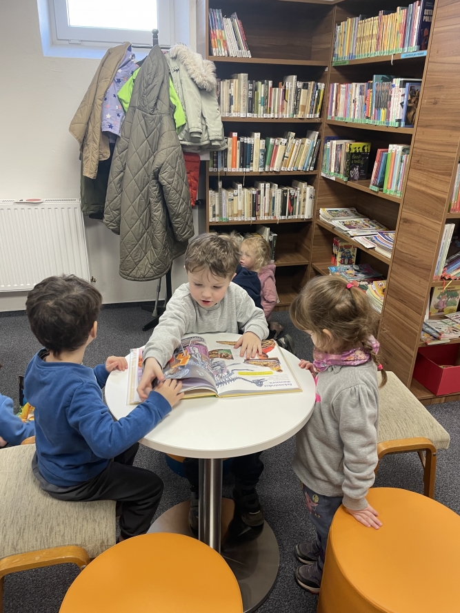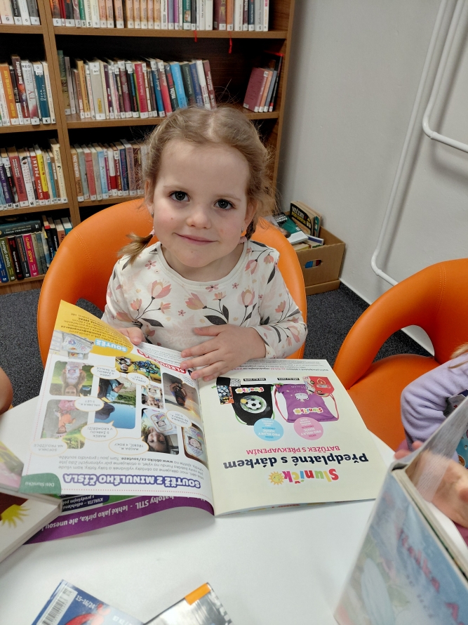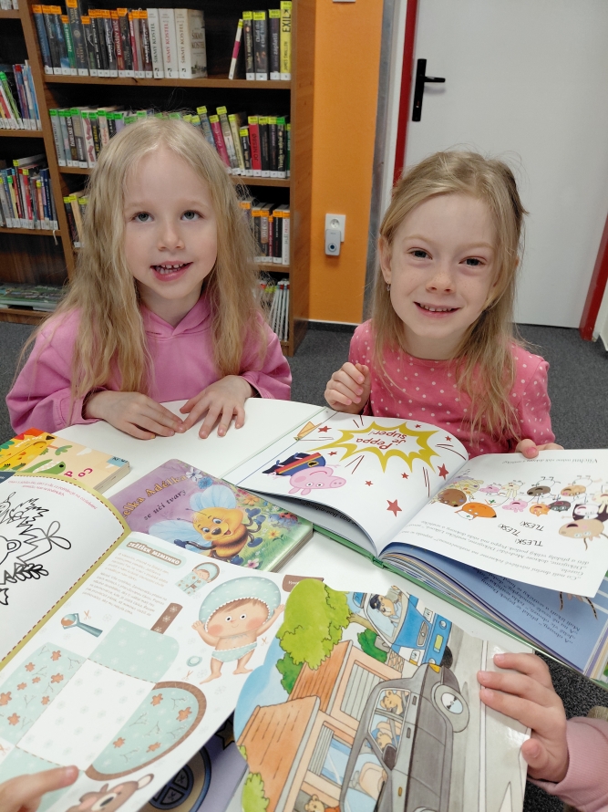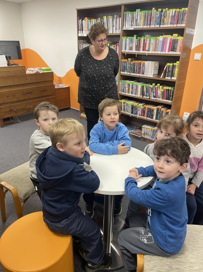 Celá naše školka vyrazila do knihovny. Děti si prohlížely knížky, poslouchaly povídání a užily si krásné dopoledne mezi příběhy.Zpět na výběr alb