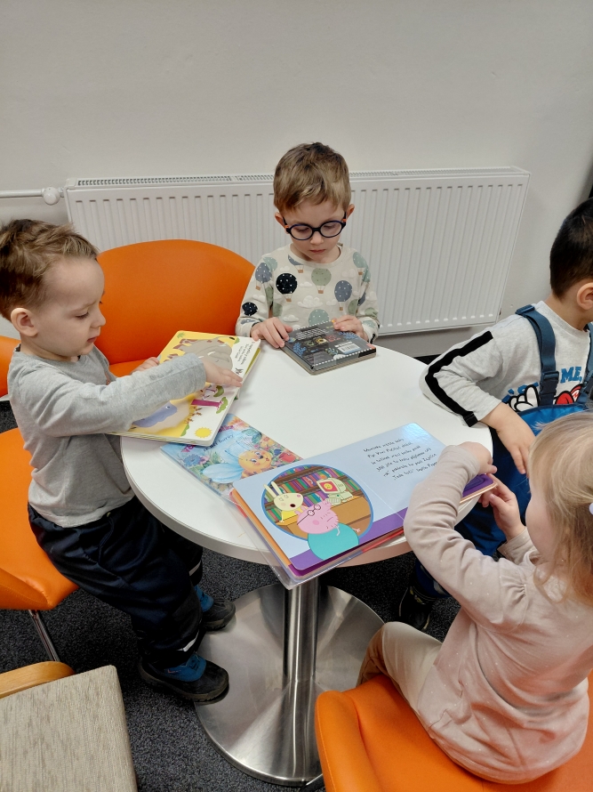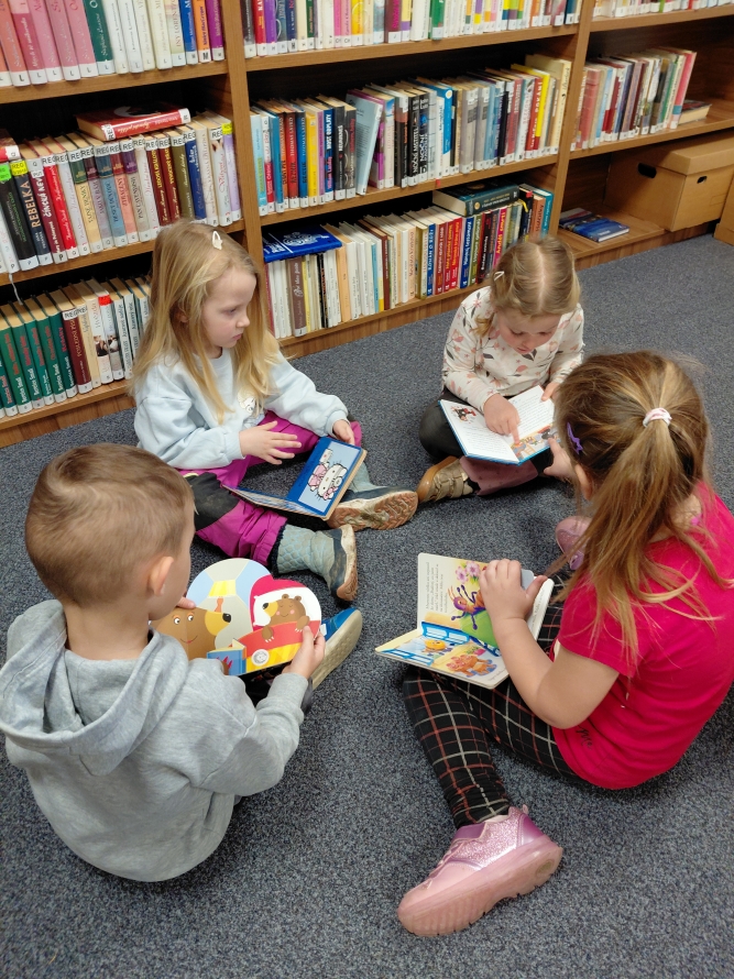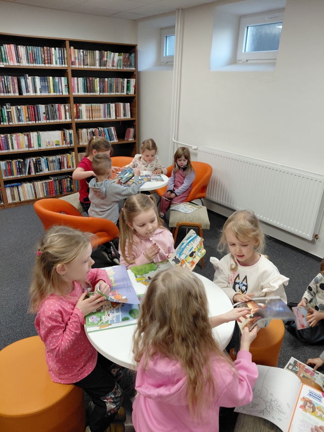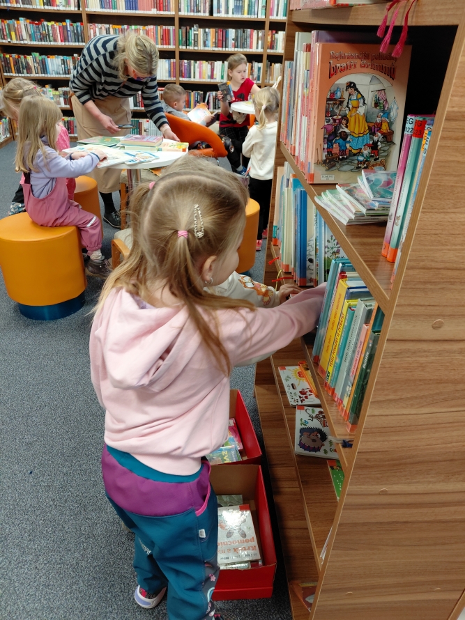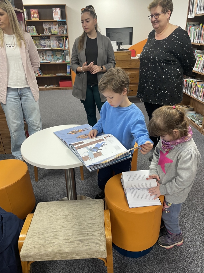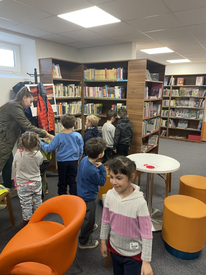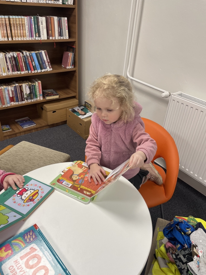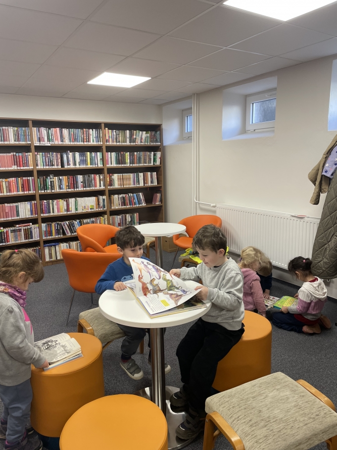 Celá naše školka vyrazila do knihovny. Děti si prohlížely knížky, poslouchaly povídání a užily si krásné dopoledne mezi příběhy.Zpět na výběr alb