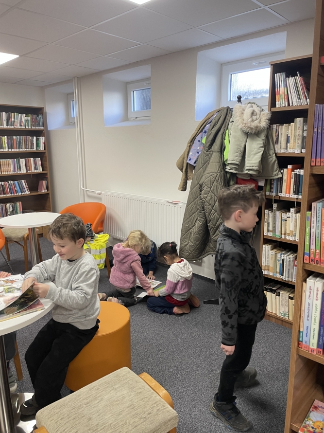 Celá naše školka vyrazila do knihovny. Děti si prohlížely knížky, poslouchaly povídání a užily si krásné dopoledne mezi příběhy.- -