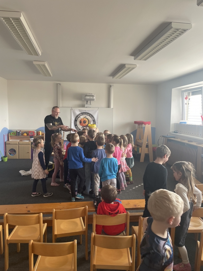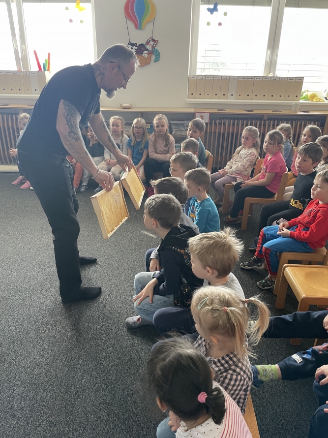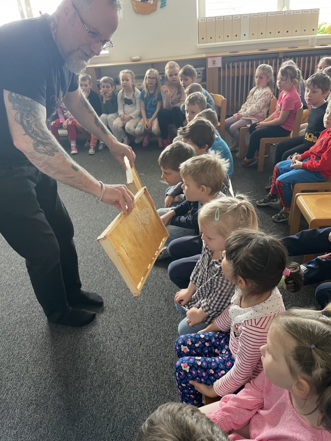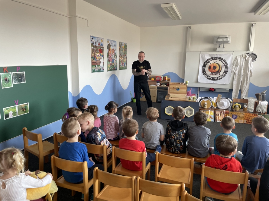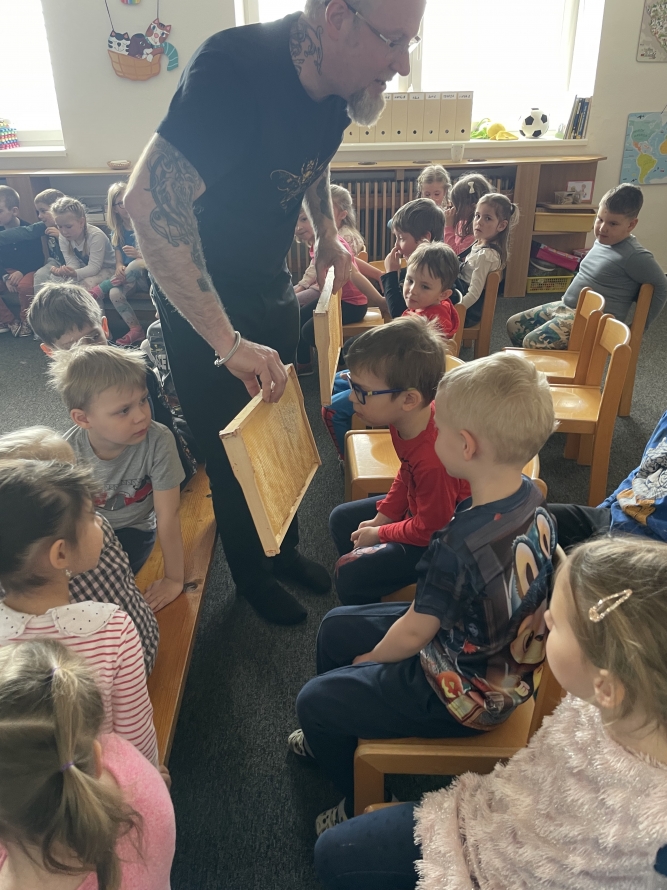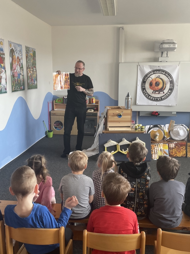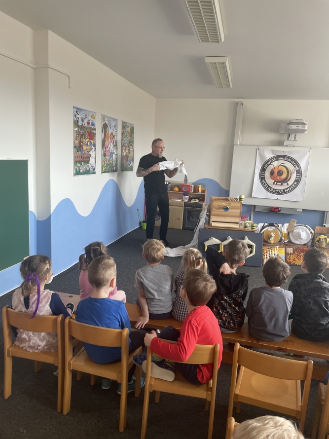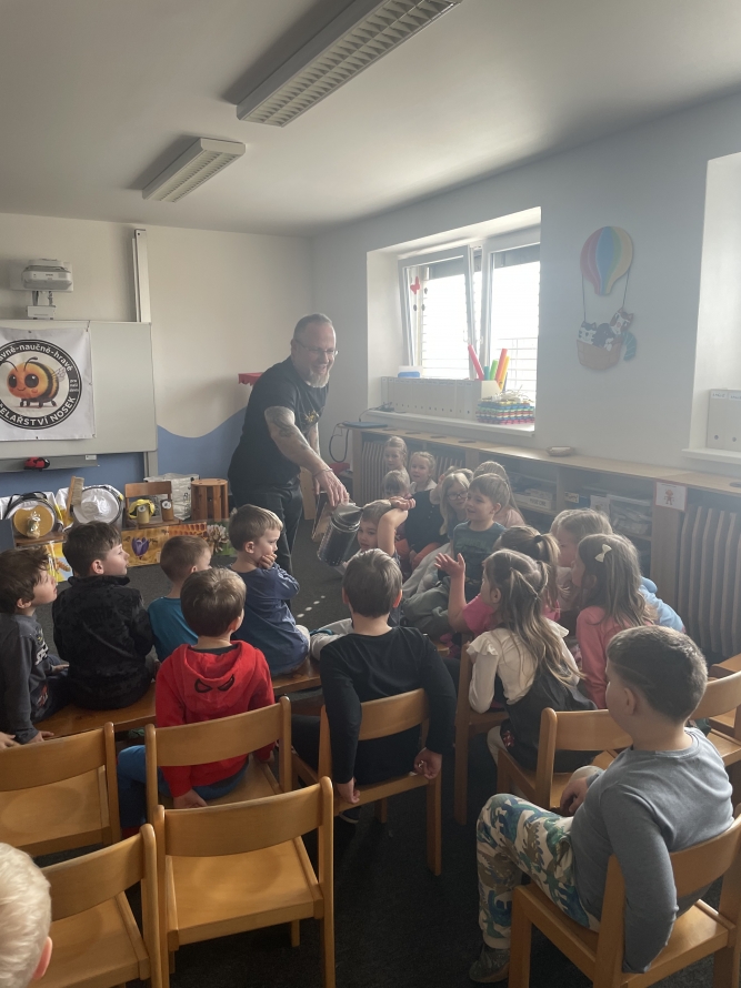 Sluníčka a Berušky dneska navštívil pan včelař s programem o včeličkach. ☀️🐝🐞Zpět na výběr alb