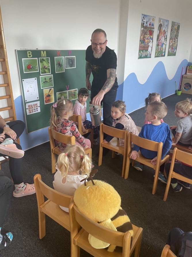 Sluníčka a Berušky dneska navštívil pan včelař s programem o včeličkach. ☀️🐝🐞- -